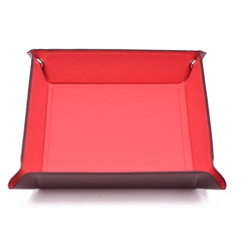 HDdais Dice Rolling Tray - Eco Friendly Leather Collapsible Dice Tray Catchall Change Key Wallet Coin Box Tray (Red)