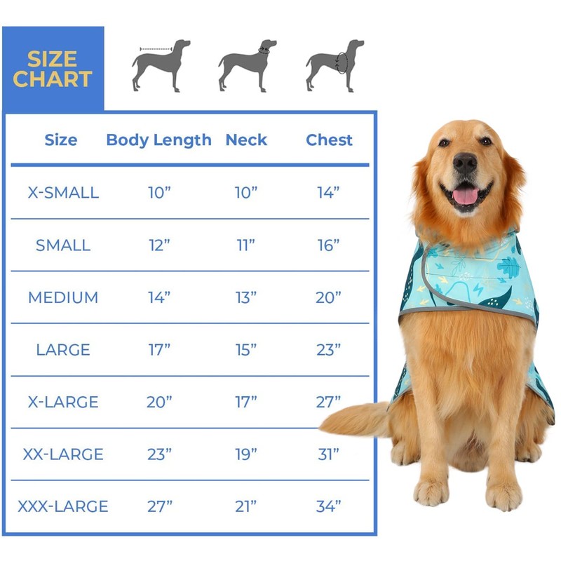 - Sizing recommendations: For the best fit, match the dimensions from our size chart to your pet's measurements as closely as possible. If your pet falls somewhere between two sizes, we advise ordering the larger of the two. Body: Measure the base of the neck to the base of the tail. Neck: Measure around your dog's neck leaving room for two fingers. Chest: Measure your dog's chest around the widest part
