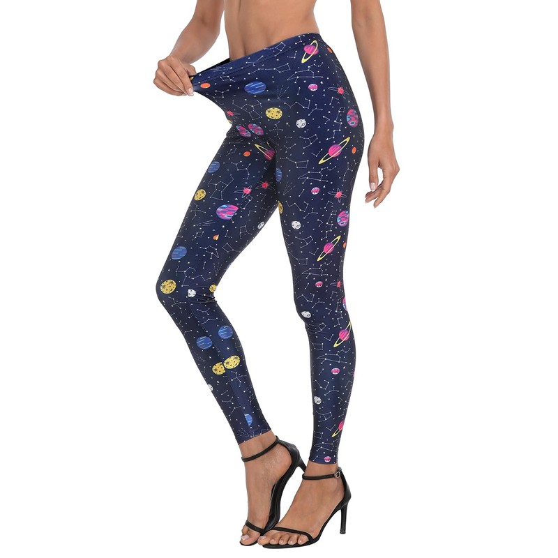 HDE Trendy Design Workout Leggings - Fun Fashion Graphic Printed Cute Patterns Solar System - L