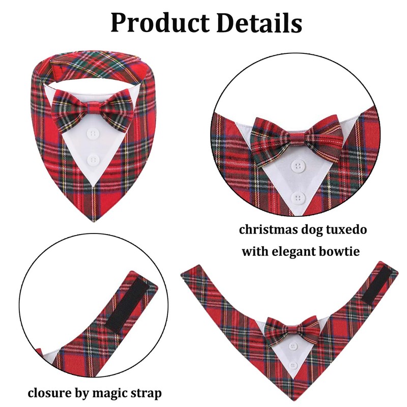 - 【Christmas Style Dog Tuxedo Bandana】christmas dog tuxedo bandana, classic red plaid pattern, specially design for christmas day. full of xmas atmosphere, make your dog look attractive and lovely for christmas holiday.