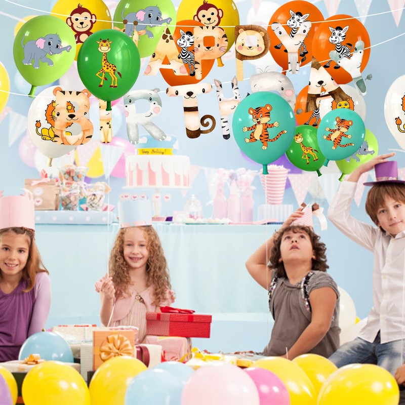 - Creative design: this product is uniquely designed, and the flag is equipped with animal patterns, which is bright and colourful and contributes to the fun and joyful atmosphere of the birthday party. The balloons also have cute animal patterns, which are particularly suitable for jungle animal themes.
