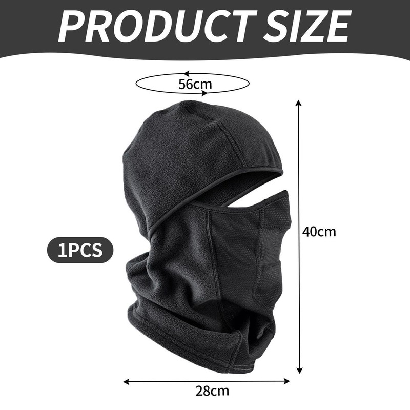 - Product contents: you will receive 1 x polar fleece bicycle mask. The size of the mask is 56 cm (cap circumference), 40 x 28 cm and the colour is black. It is suitable for warmth and wind protection.