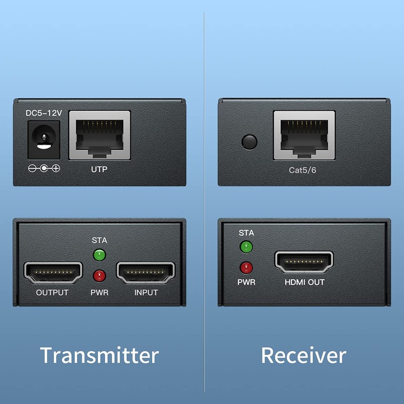 - 【Long-Distance HDMI Transmission】Achieve a 60m/196ft transmission distance with Cat6/7, and 40m/130ft with Cat5e, providing superior audio and video quality for longer distances. For optimal performance, we recommend using Cat6 cables.