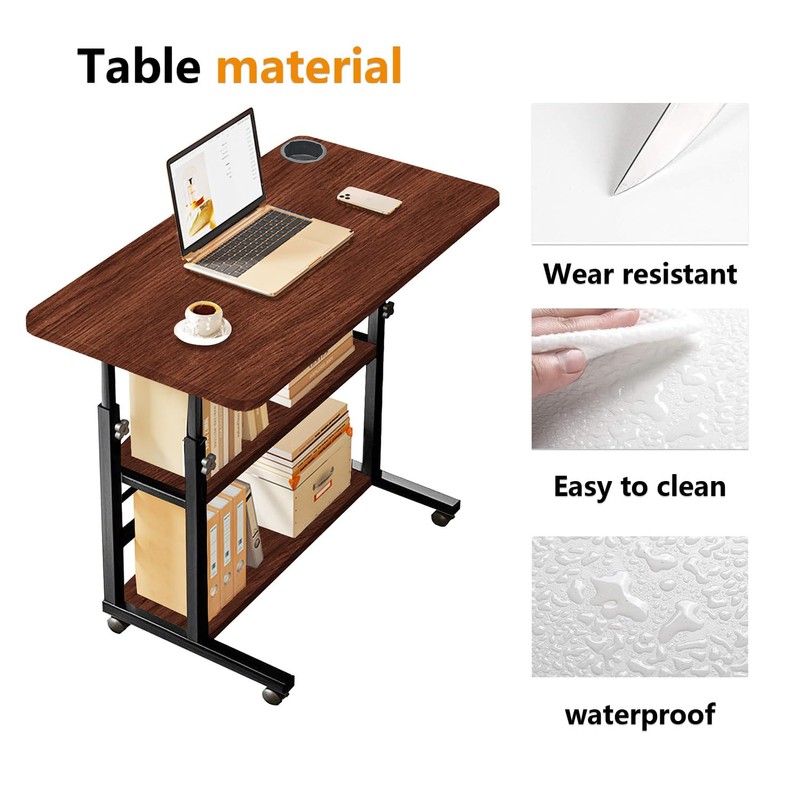 • [Rolling Standing Desk With Storage]:Multi-level storage space. This portable standing desk is made of three layers of layered design, the wide desktop can let you store the items you need, while meeting your home office needs, the bottom of the desktop design of two layers of bookshelves, can help you plan the use of office, study, work space, enhance the sense of use of the desk