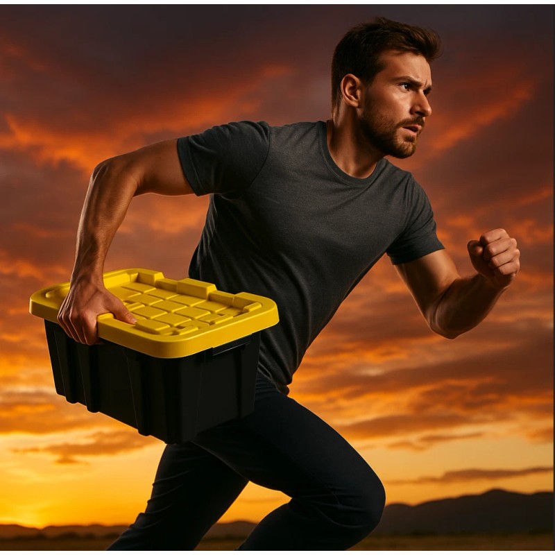 Forged from high-strength black polypropylene with a signature yellow lid that snaps shut like a vault, this tote is compact in size but colossal in performance. It doesn’t bend. It doesn’t break. It doesn’t flinch. Whether you’re building an apocalypse-ready tool wall or turning chaos into sleek order, this is your foundation.