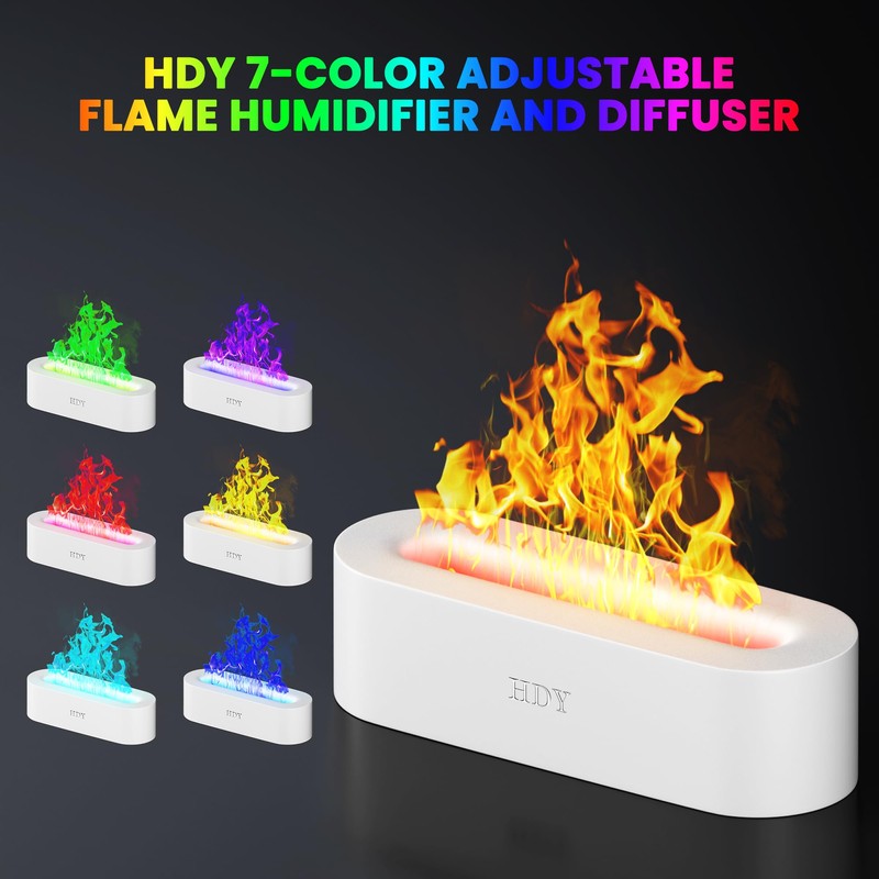 - UPGRADED VERSION: SEVEN-COLOR FLAME HUMIDIFIER. This HDY diffuser offers seven LED colors, with options for a fixed or cycling display. A cleaning brush is included for convenience.