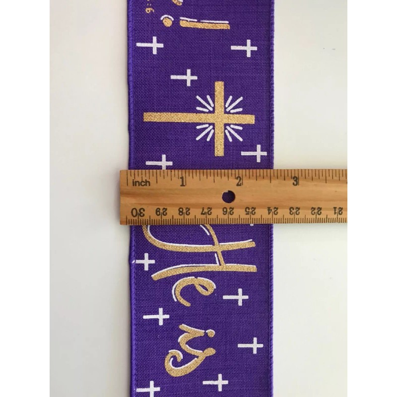 He is Risen! Matthew 28:6 Purple Ribbon, 2 1/2 Inches Wide, Wired Edge, 3 YARDS