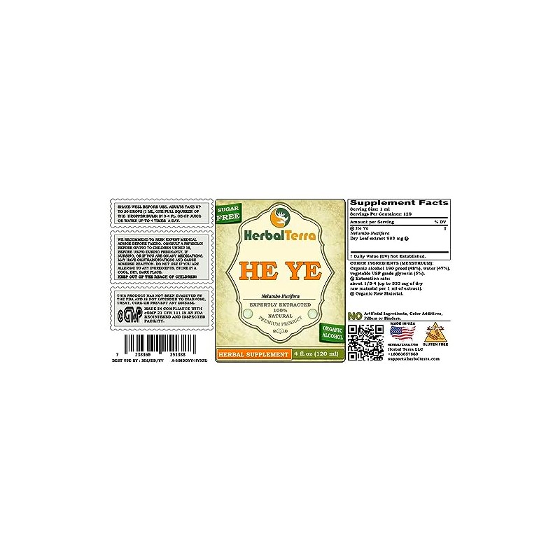 He Ye, Lotus (Nelumbo Nucifera) Tincture, Dried Leaf Liquid Extract (Brand Name: HerbalTerra, Proudly Made in USA) 2x4 fl.oz (2x120 ml)
