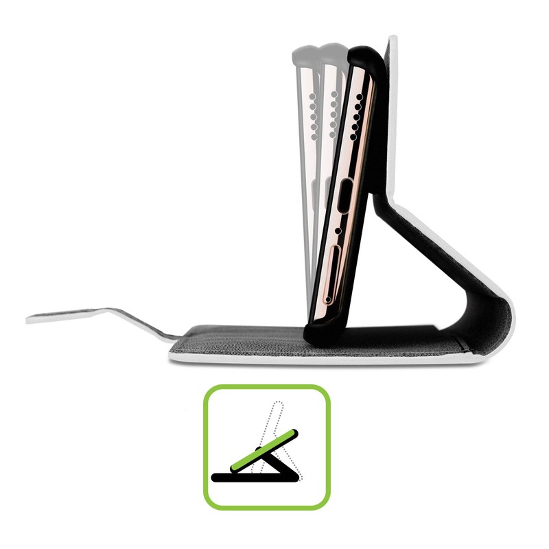 Form meets function. This wallet conveniently features three slots to hold your credit cards and cash. And when it is time to relax you can set your mobile device to your preferred viewing angle with its adaptable angular mechanism to watch videos, check newsfeed or go social - the perfect partner for your mobile device.