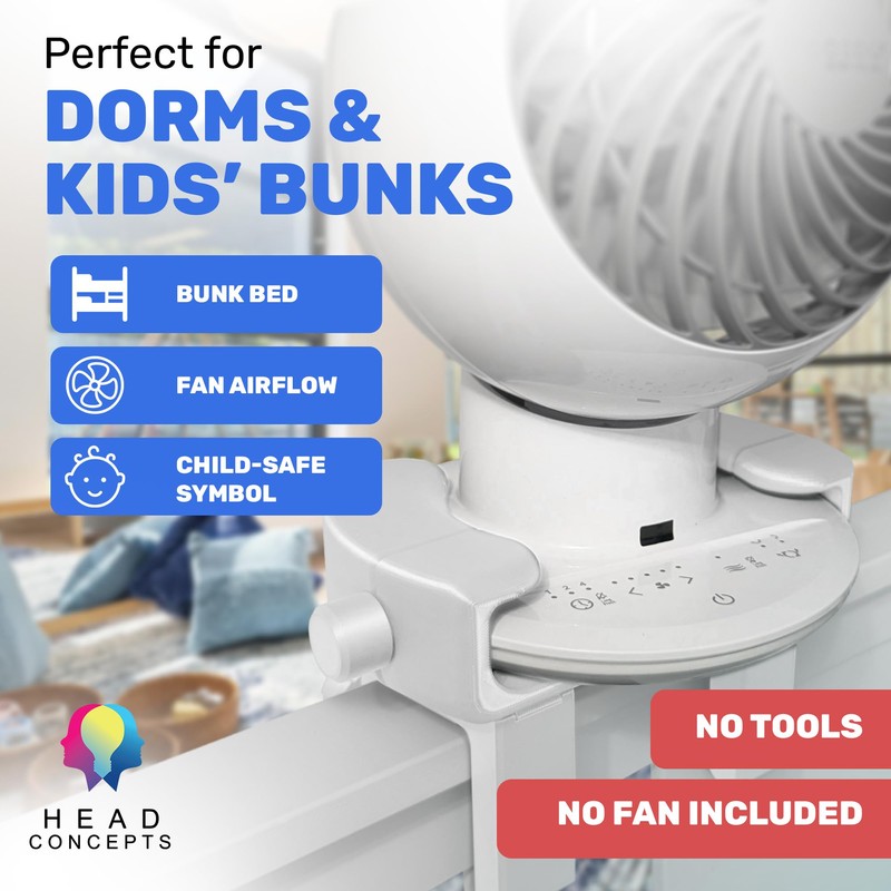 Head Concepts Head Concepts Clamp Fan Holder for Woozoo Fan - Bunk Bed & Dorm Bed Mount - College Dorm Essentials -Compatible with 8.27" Woozoo Models (FAN NOT INCLUDED)
