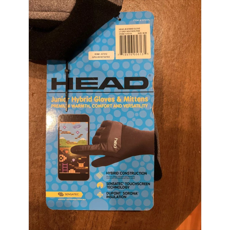 HEAD JR Hybrid Touchscreen Gloves Mittens Grey Heather Pink Medium Age 6-10