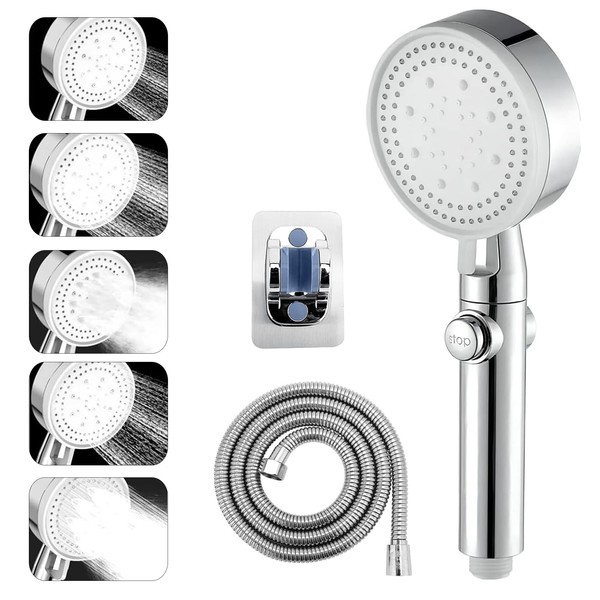 Head Shower Head with 5 Functions Pressure Increasing Jet Hand Shower Functions Economy Shower Head for Bathing Saving Shower Head Shower Head with Hose for Bathing, Cleaning, Tub