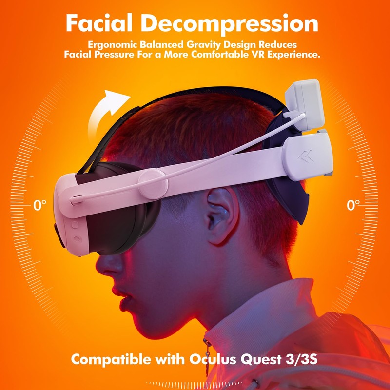 - Compatible with Meta Quest 3 / Quest 3S: This head strap reduces facial pressure through a suspended design with multi-point adjustment, evenly distributing the headset's original facial pressure from the face to the head. Its ergonomic design enhances immersion in the virtual world.