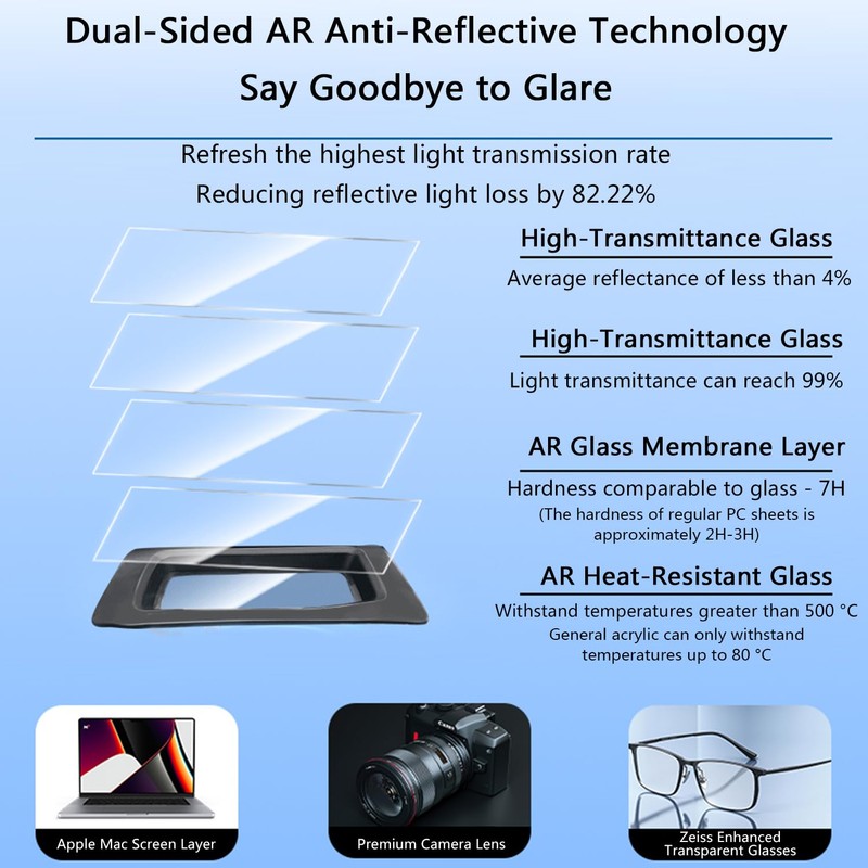 - Cutting-edge High-definition Technology:AR anti-reflection technology, high-definition and transparent.