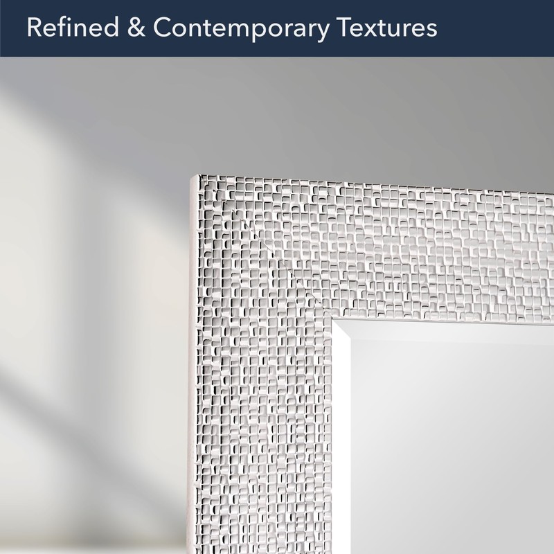 - Elegant Tile Textured Frame: The chrome & white tile-textured frame of this bathroom wall mirror adds a modern touch to your space. This chrome mirror for bathroom enhances bedrooms, living rooms, & entryways, making it a versatile & stylish accent.