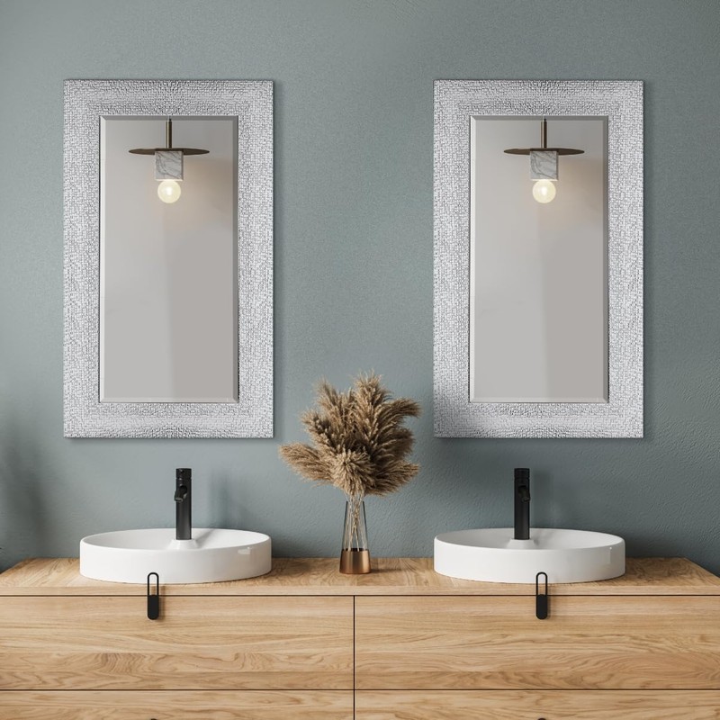 - Beveled Edge for Depth: The beveled edge of these framed wall mirrors offers a polished look and clear reflection. These chrome & white-framed mirrors for bathrooms enhance your space’s style, blending functionality & elegance for grooming or decor.