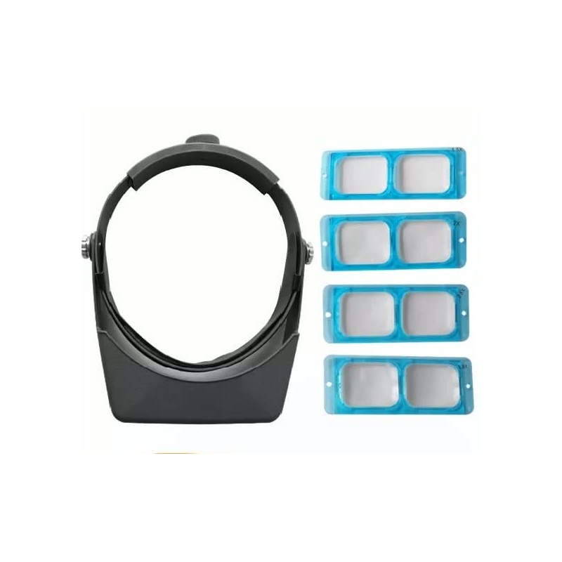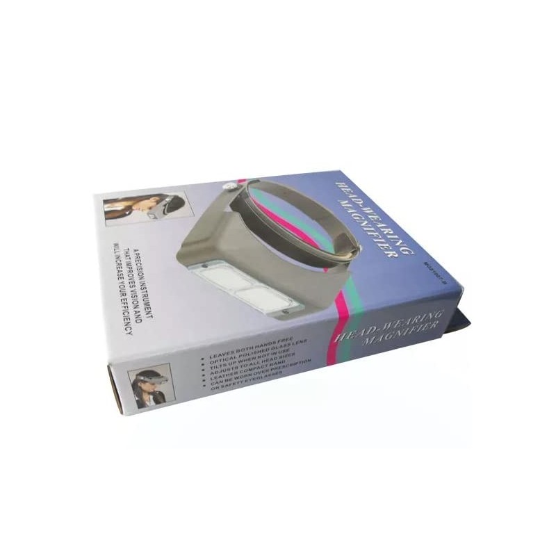 - Double Lens magnifier worn on the head with an adjustable band keeps hands free for working.