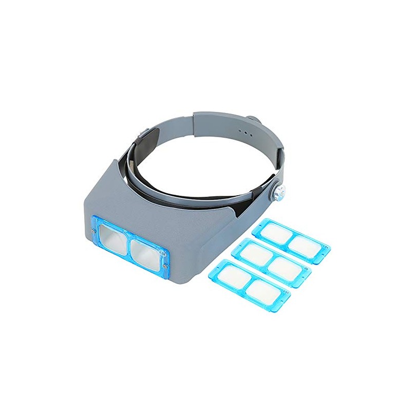 Headband Magnifier Visor Double Lens - Magnifying Visor with 4 Real Glass Optical Lens Plates (1.5X, 2X, 2.5X, 3.5X)