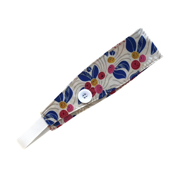 Headband with Buttons for Masks or without Buttons - Organic Cotton Ear Saver - Tan with Floral Design