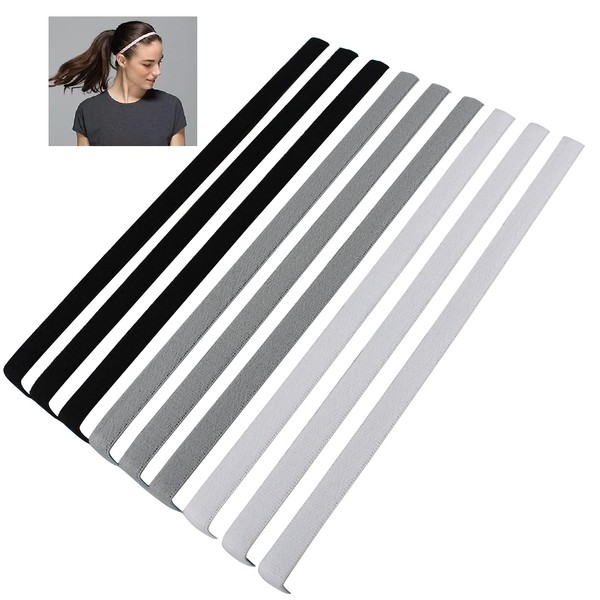 Headbands Headbands for Women Kids Slim Sports Sweatband Running Soccer Yoga Face Wash Lightweight Elastic Mens Headband (3 Black/3 Gray/3 White)