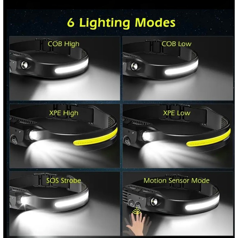 Headlamp Rechargeable, 270° Wide Beam, Motion Sensor, 10W, Weatherproof, 1000Lumen, 2 Light Source, for Camping, Hiking, Running, Outdoor, Outdoor Hardhat Light, Adults and Kids