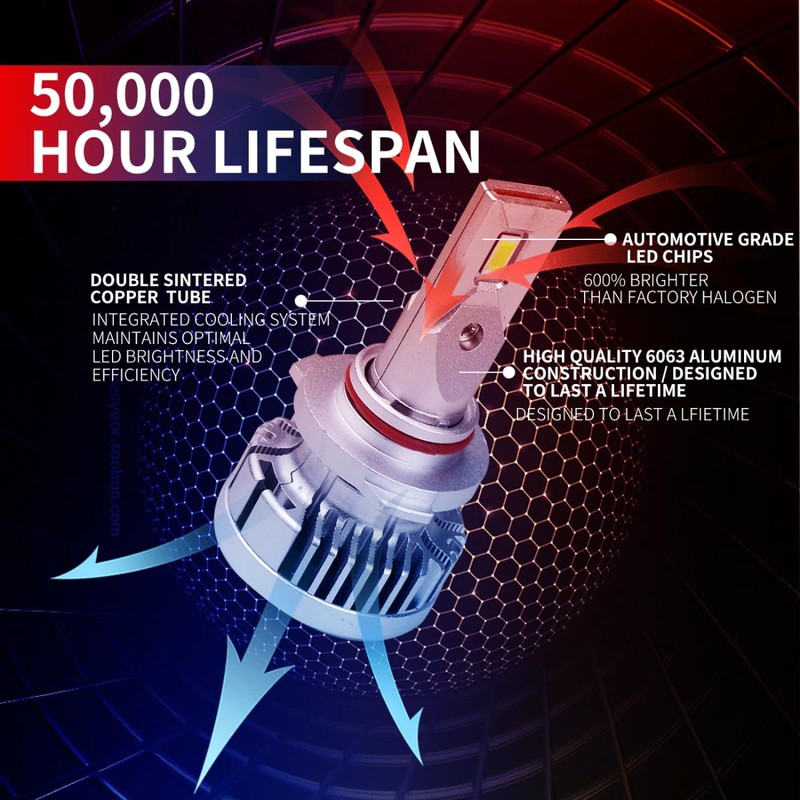 • 【600% Brighter Than Halogen】- Top Automotive-Grade chips with a REAL 22000LM per pair, 6000K color temp. Factory focused beam pattern design provides wider and farther lighting range which is 6 times brighter than your original halogen bulb. Made for your factory assembly.