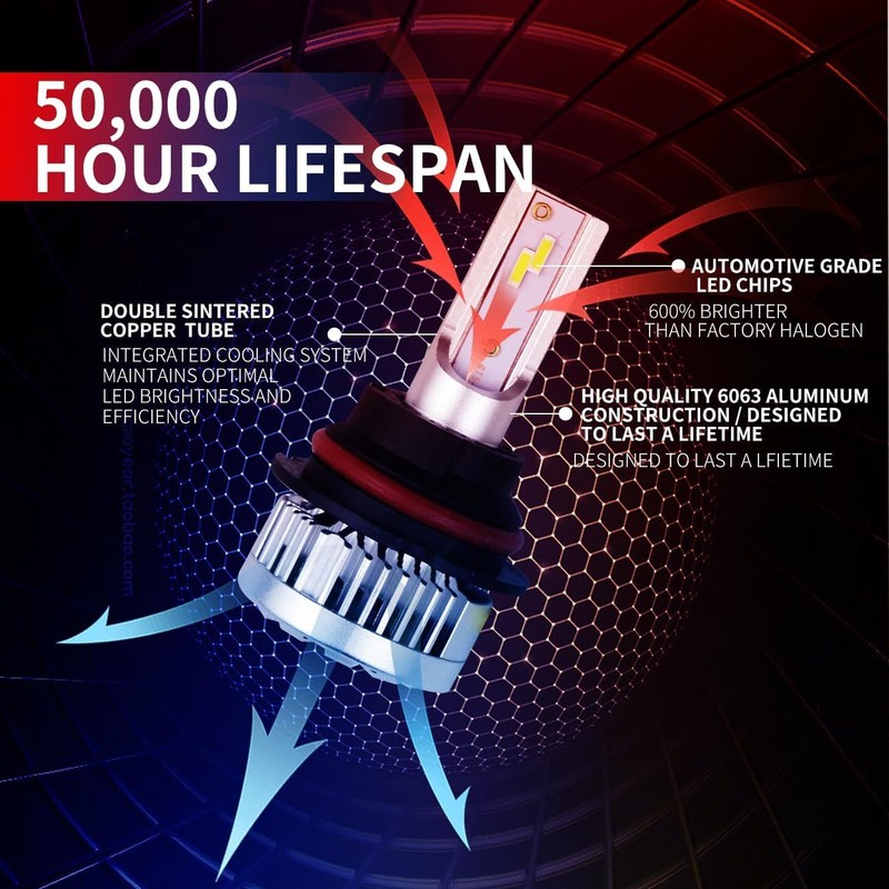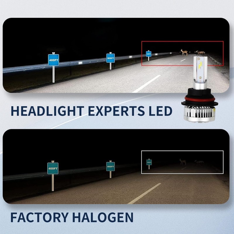 - 【600% Brighter Than Halogen】- Top Automotive-Grade chips with a REAL 22000LM per pair, 6000K color temp. Factory focused beam pattern design provides wider and farther lighting range which is 6 times brighter than your original halogen bulb. Made for your factory assembly.