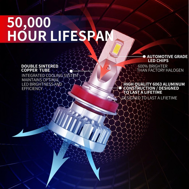 - 【600% Brighter Than Halogen】- Top Automotive-Grade chips with a REAL 22000LM per pair, 6000K color temp. Factory focused beam pattern design provides wider and farther lighting range which is 6 times brighter than your original halogen bulb. Made for your factory assembly.