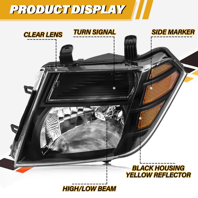 - 【PACKAGE INCLUDES】: Come with 2 Pcs Headlight Assemblies (Left and Right side), Black Housing+Clear Lens+Yellow Reflector, With High/Low Beam Bulbs. It will bring a brand new appearance to your vehicle or to replace the damaged or worn old rear lamps. High intensity lamps provide exceptional illumination to increase driving safety. Replaces OE Number: 26060ZS00A 26010ZS00A, Partslink Number: NI2502171 NI2503171