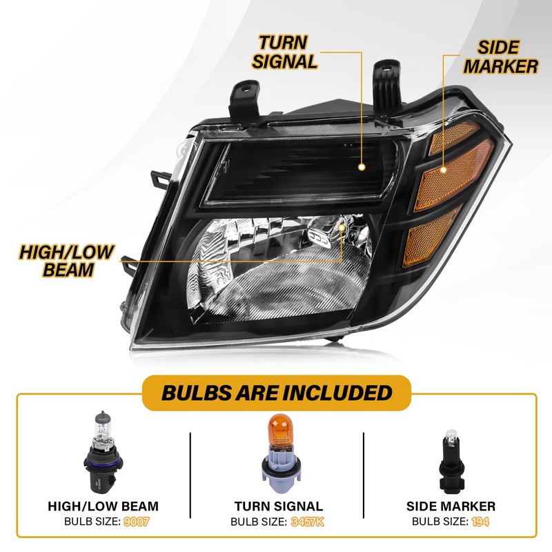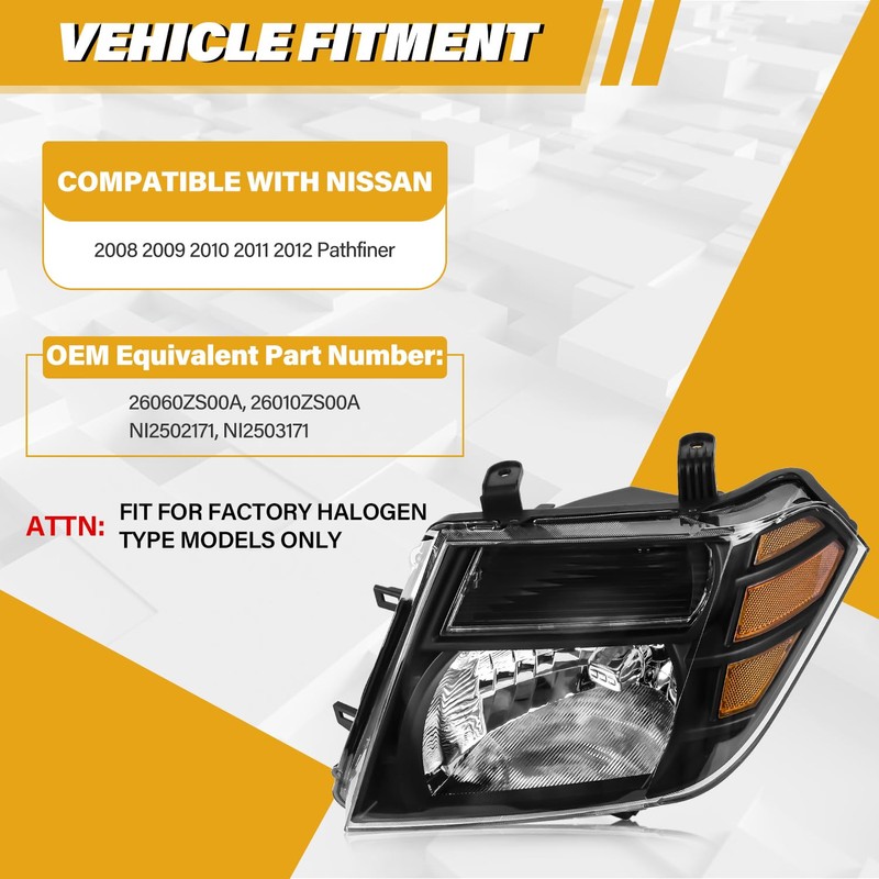 - 【EXACT OE FIT】: LIWEDFG Headlight Assembly is compatible with Nissan Pathfinder 2008 2009 2010 2011 2012, Halogen Type Replacements, High/Low Beam Bulbs are Included. Please check the Appearance, Plug and OE Reference numbers to make sure you are getting the correct replacement part for your vehicle