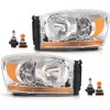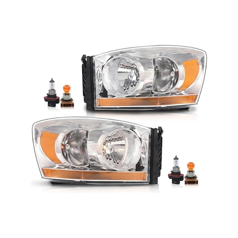 Headlights Assembly w/Bulbs Light Bar Left and Right Side Compatible with Dodge Ram 1500 2006-2008/Fit Dodge Ram 2500 3500 2006-2009 Clear Lens Chrome Housing Amber Reflector