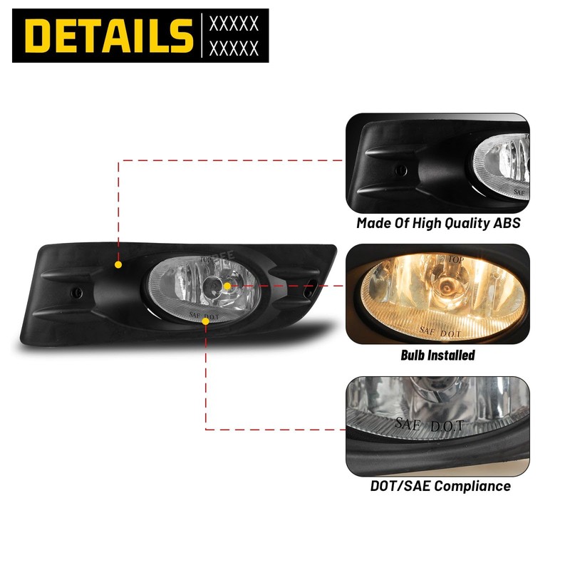 - High Quality Driver and Passenger Side Halogen Type Fog Lights DOT and SAE stamped and meets all safety requirements