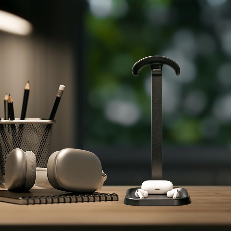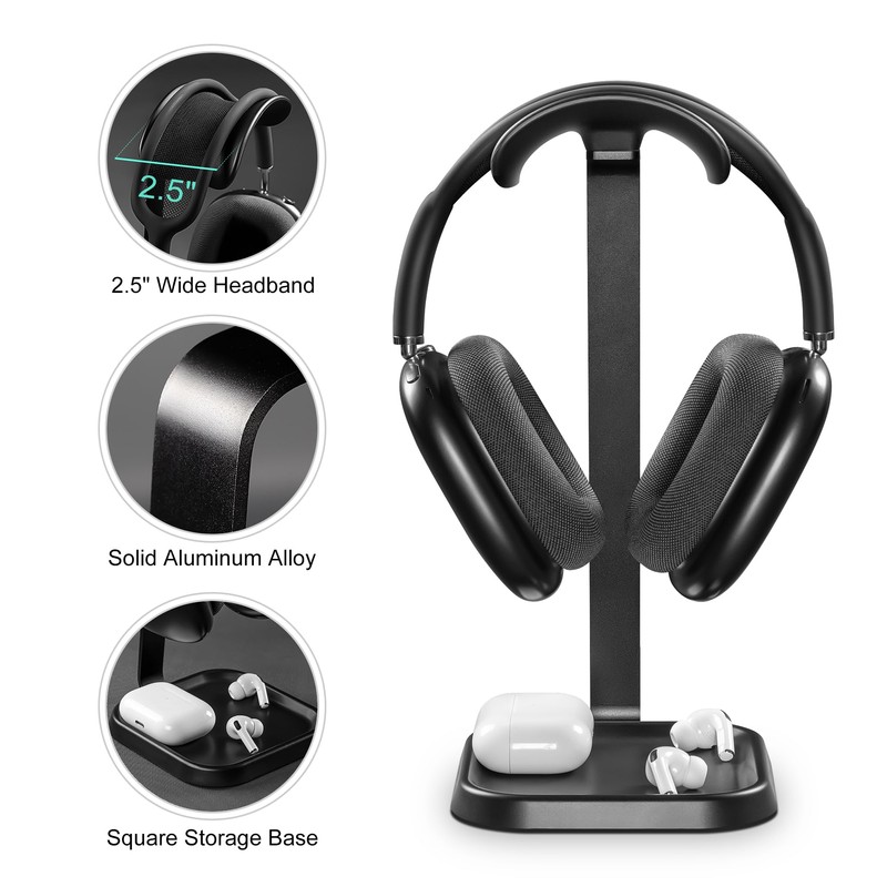 Headphone Stand, Curved Headset Stand with Storage Tray, Gaming Headset Holder for AirPods Max, AirPods Max 2, AirPods, AirPods Pro, Beats, Bose, Sony and More (Black)