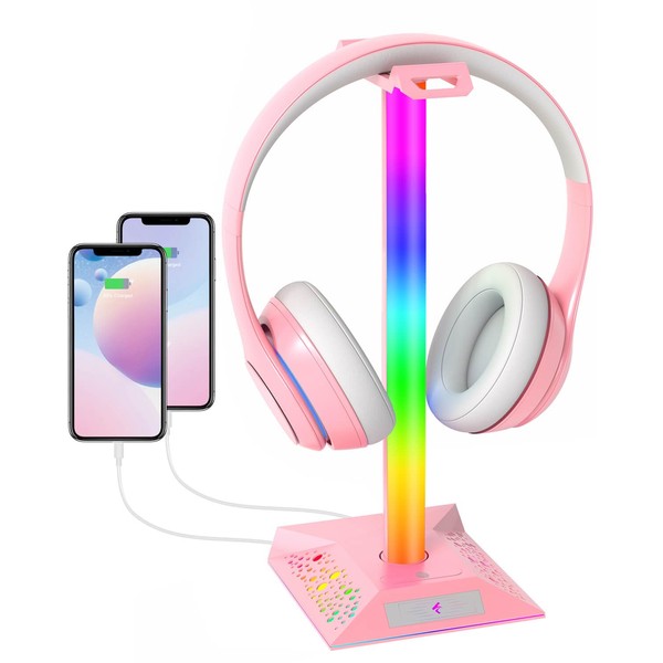 Headphone Stand PC Gaming Accessories - RGB Headset Stand Headphone Holder for Boy Gamer, Cool LED Headset Stand with 2 USB Charger for Desk