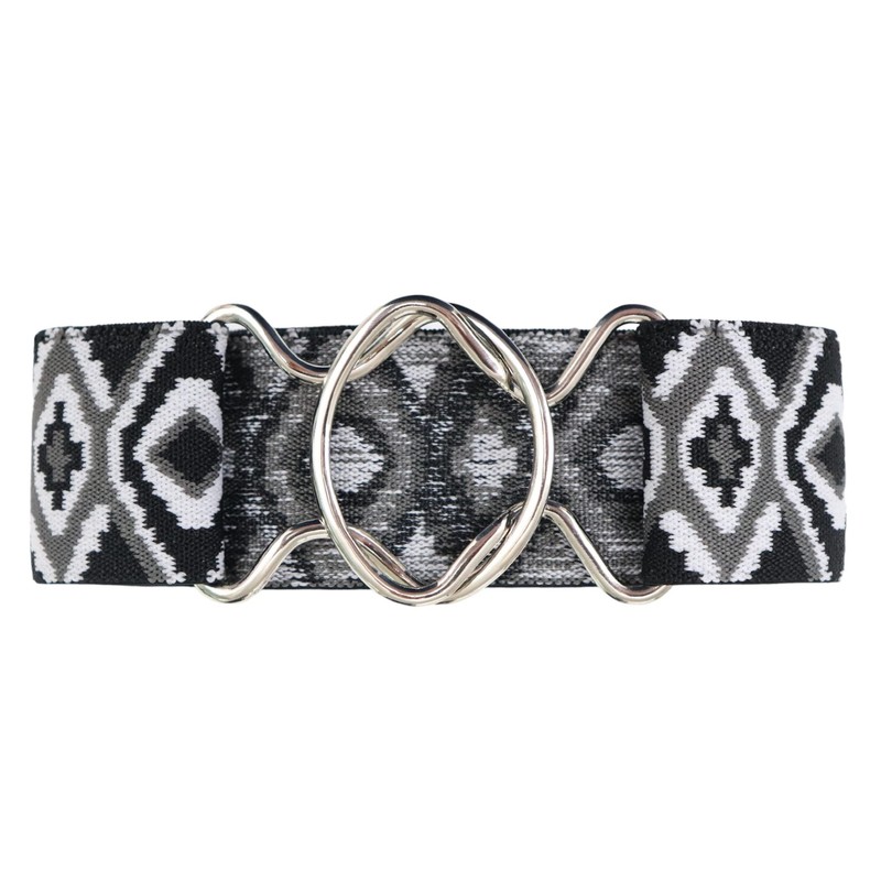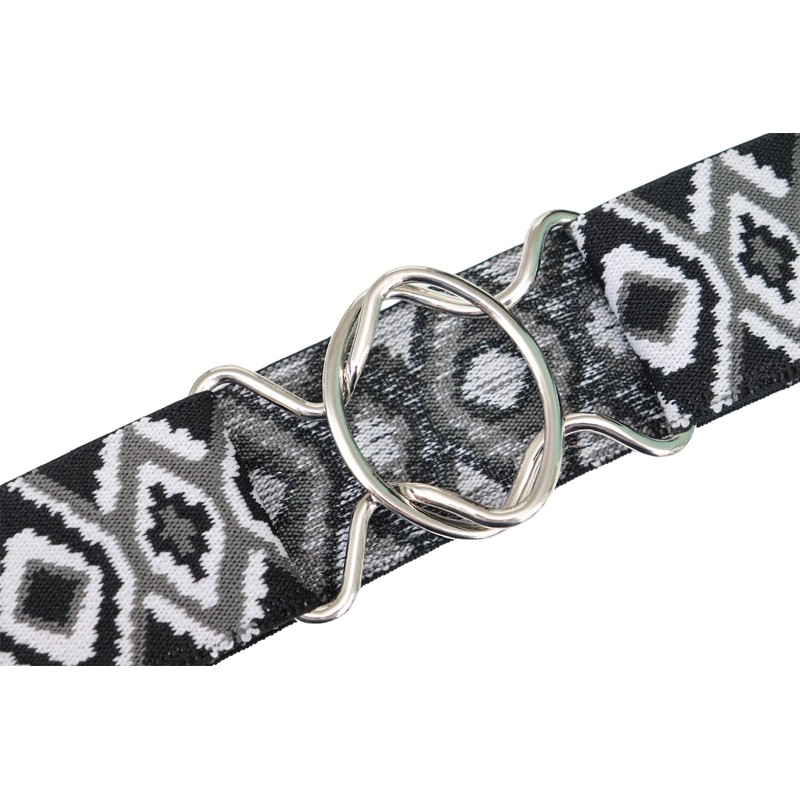 Heads Up Apparel 2 inch Aztec Equestrian Elastic Belt with snaffle bit, circle or surcingle buckle., Grey, Adjusts from 20-37 inch waist.