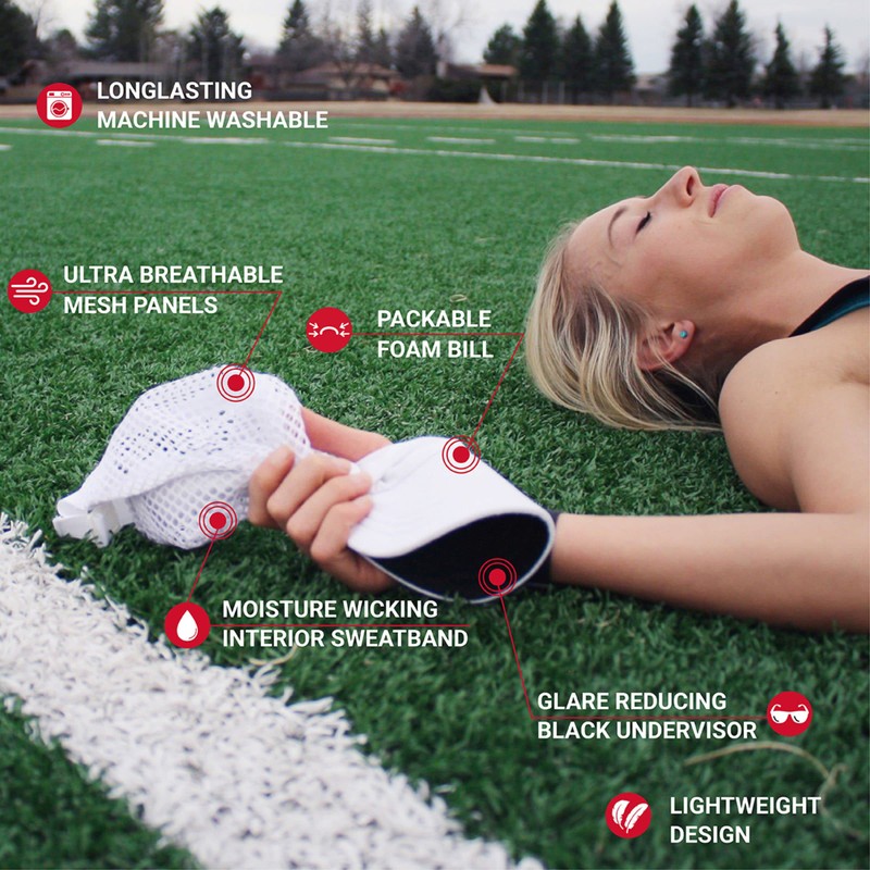 - Black undervisor helps reduce glare; Adjustable rear buckle with ponytail opening. One size fits most