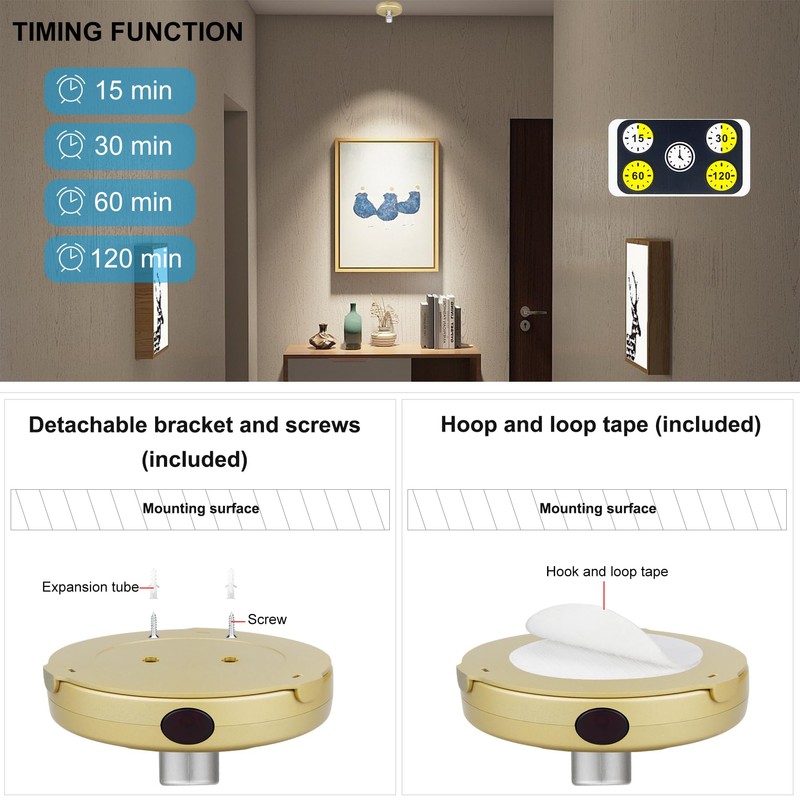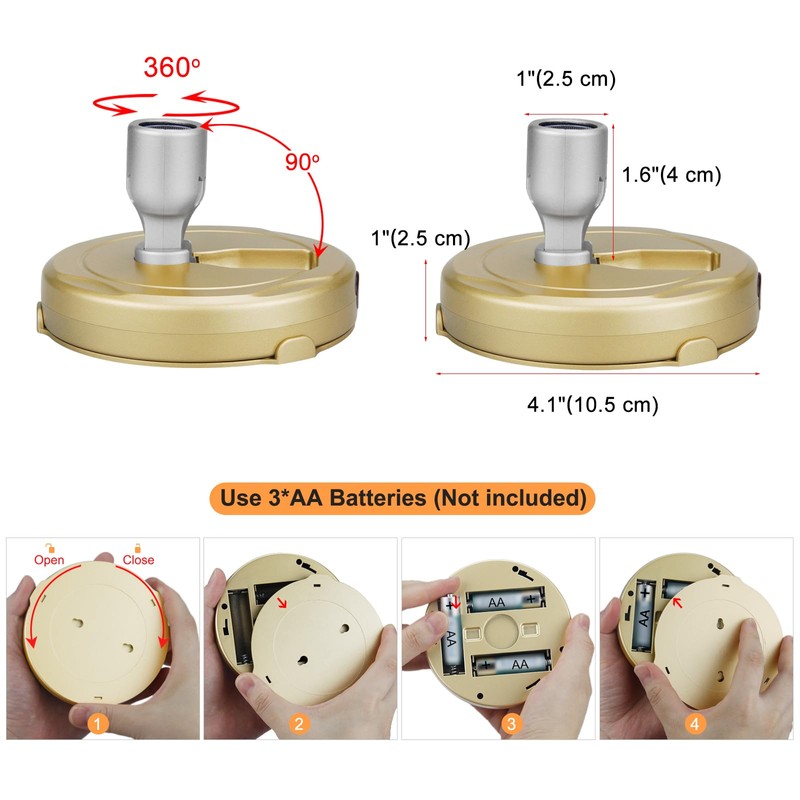 - 【BATTERY OPERATED SPOTLIGHT】 - Powered by 3 AA batteries(not included), Easy to install with hook loop tape or screw mounting (included).