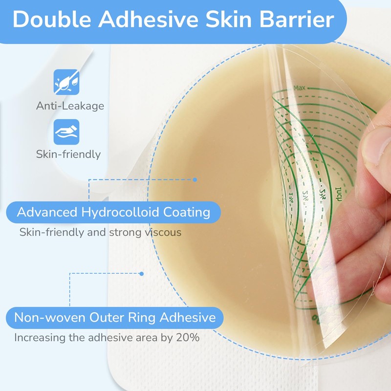 - DUAL PROTECTION: The hydrocolloid chassis provides the core adhesion for the ostomy bags, and the non-woven adhesive bonding area on the outer edge is increased by 20%, providing additional security and reducing the possibility of leakage