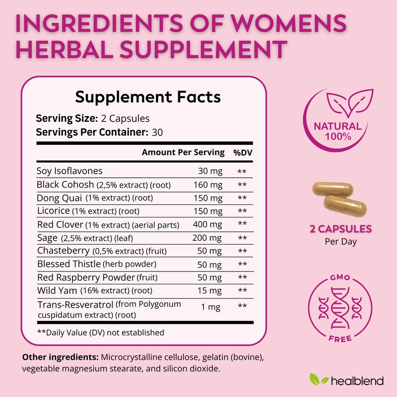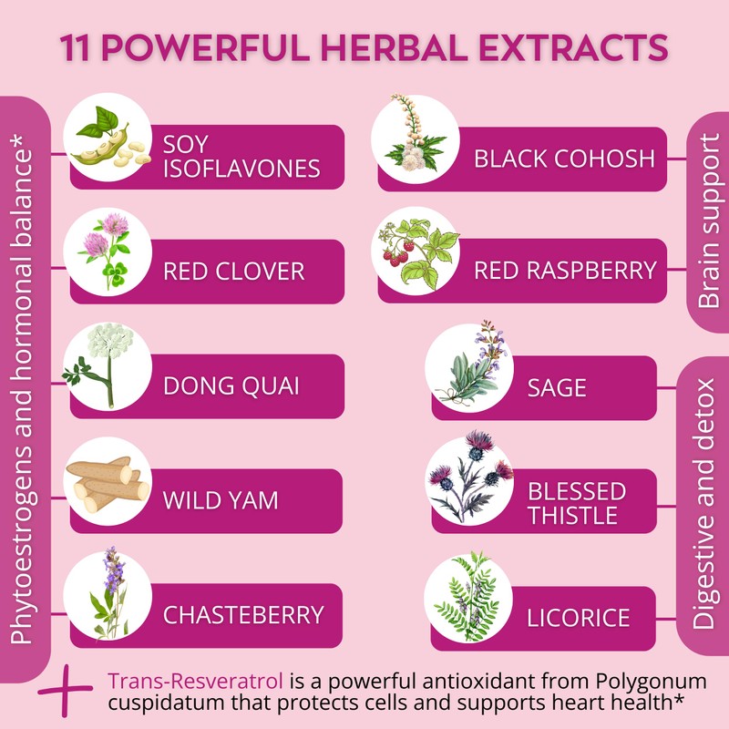 - Natural support for women's health: Thanks to herbal extracts such as Blessed Thistle and Wild Yam, you get natural support without the side effects typical of synthetic hormones.