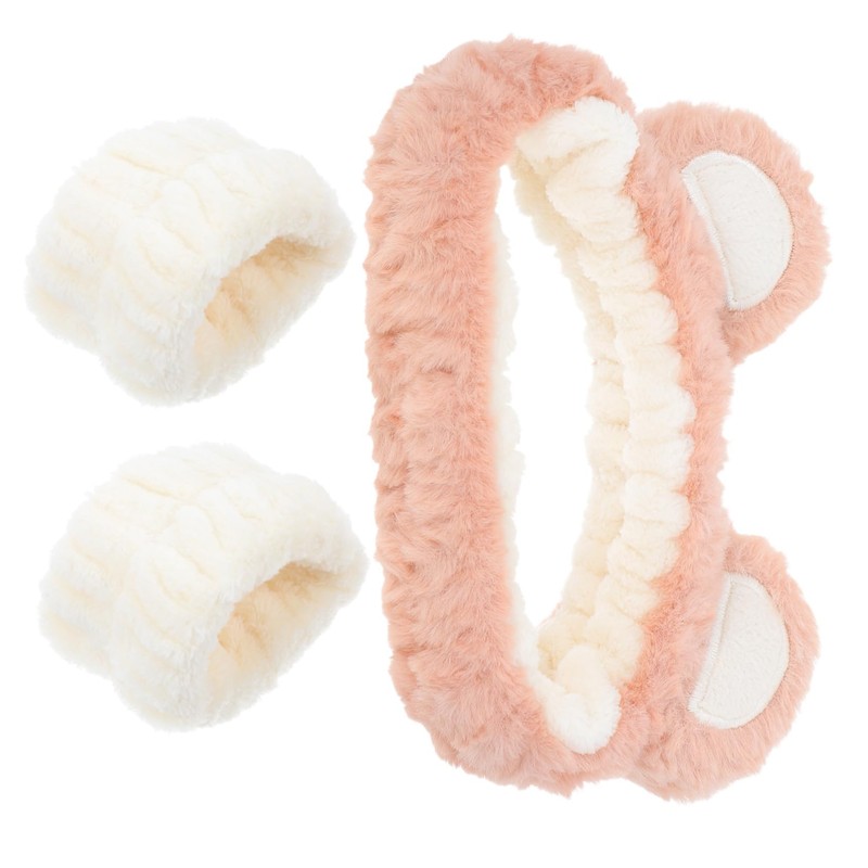 Designed for women who value both functionality and style, this set includes a bear-themed headband and wristbands that simplify your skincare routine. The headband keeps hair away from your face, while the wristbands catch water effectively. for face washing, applying masks, or enjoying a relaxing spa day .