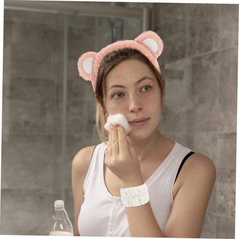 Healeved 1 Set Headband And Wristband: Spa Wrist Water Catcher - Bear Ears Headband For Face Mask Application Skincare Routine And Travel