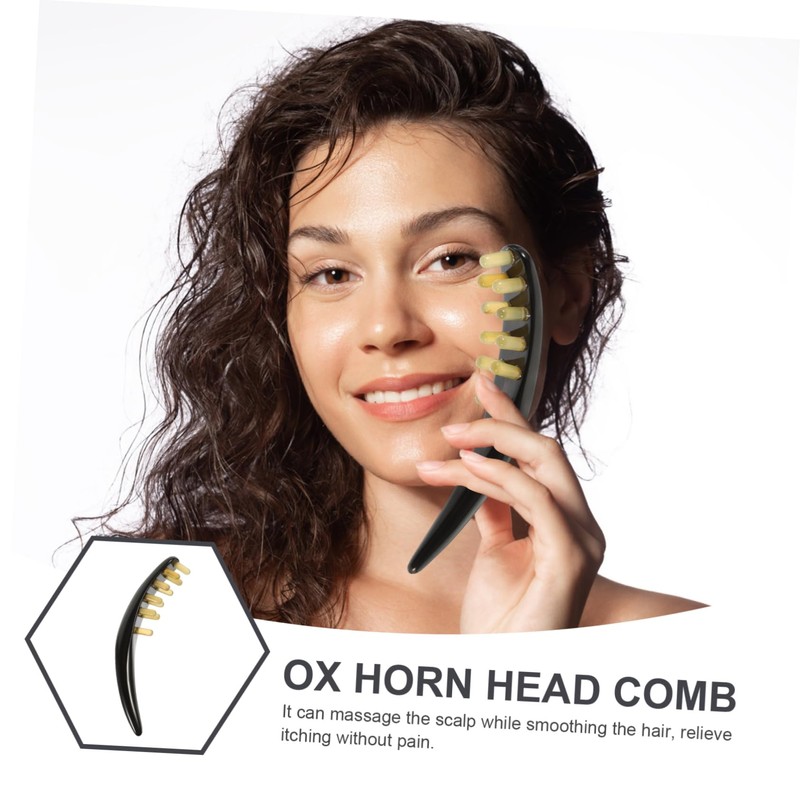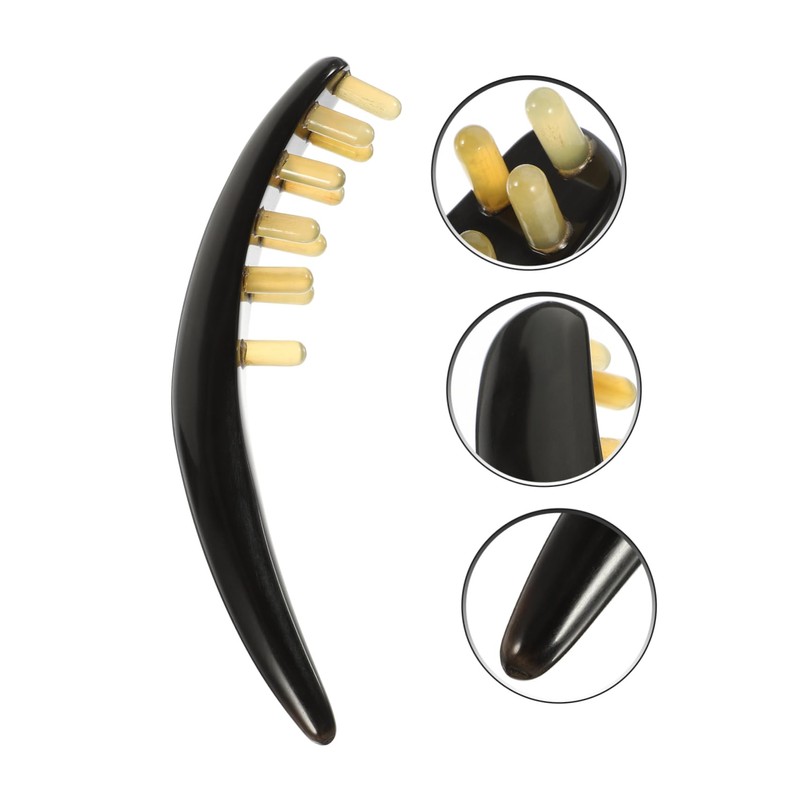 - MASSAGE STICKS-- The whole modeling ox horn comb is ergonomic and comfortable, so that you can hold it easily.