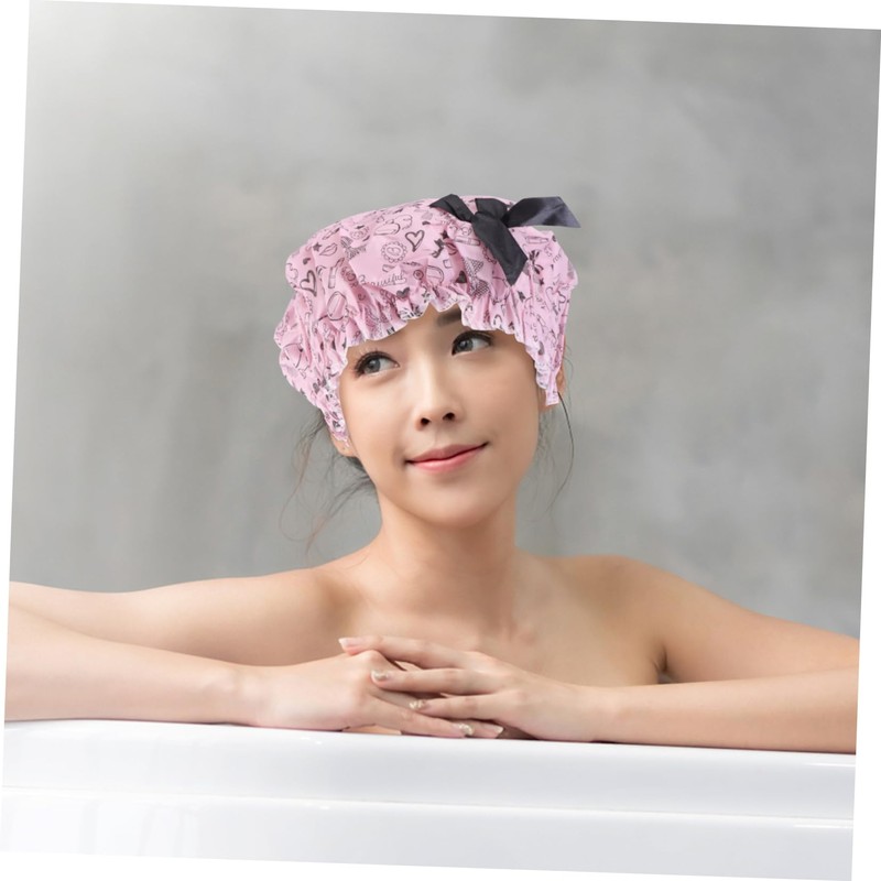 Healeved 2pcs Bath Hat Shower Caps for Women Polyester Bath Caps Bath Hair Caps Elastic Bath Cap Women Shower Double Printed Shower Cap Waterproof Shower Caps Bath Shower Cap Spa Cap