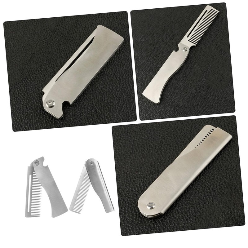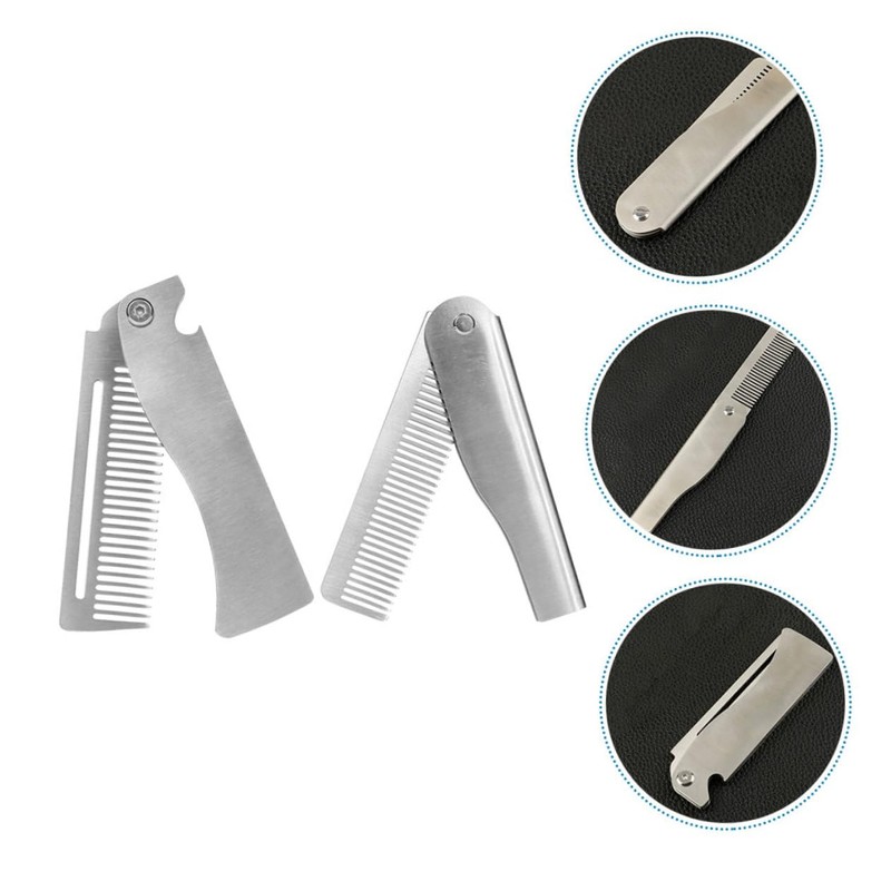 Healeved 2pcs Men's Travel Grooming Kit Mini Folding Comb for Hair Beard Mustache Stainless Steel for Barber Outdoor