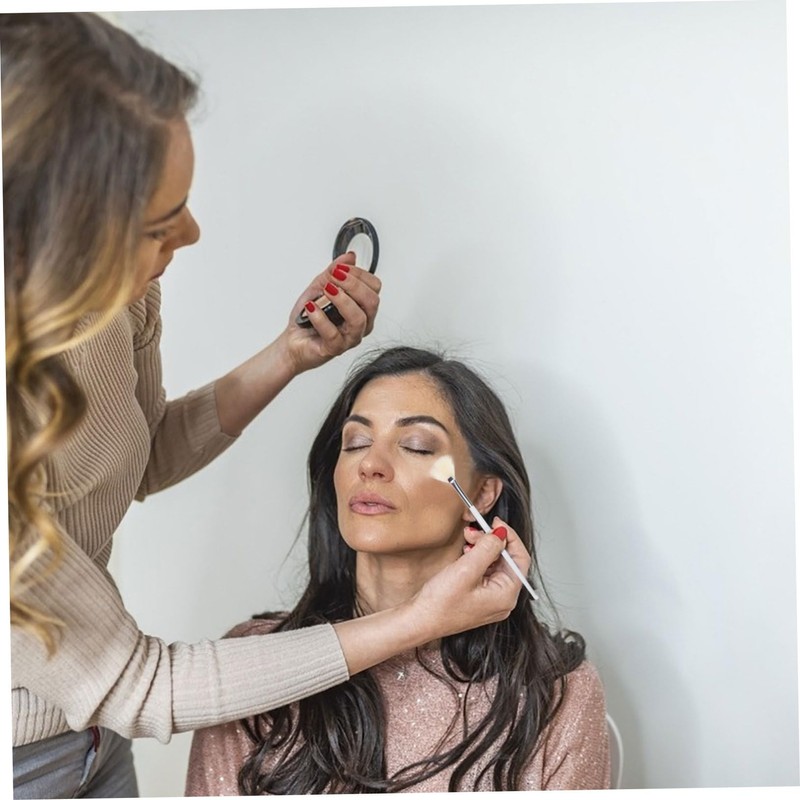 - Help you apply highlighter to cheekbones, down the bridge of the nose, and along the brow bone makeup foundation brush.