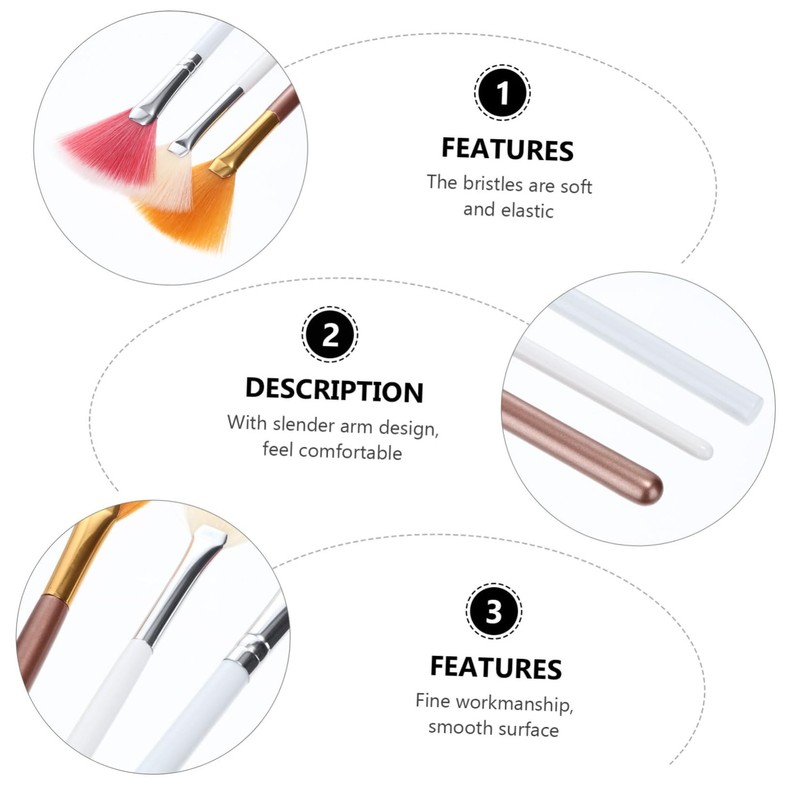 • Fan-shaped: help you apply highlighter to cheekbones, down the bridge of the nose, and along the brow bone.
