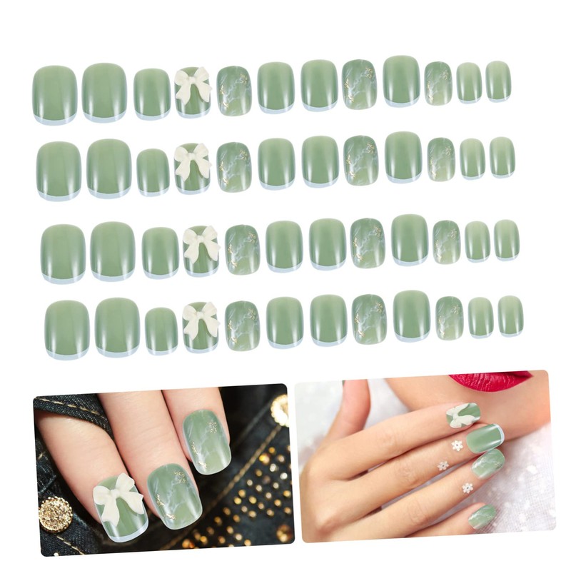 Healeved Diy Fake Nails Tips 48pcs Bow Embellished Short Nails Nail Art Design for Women Salon