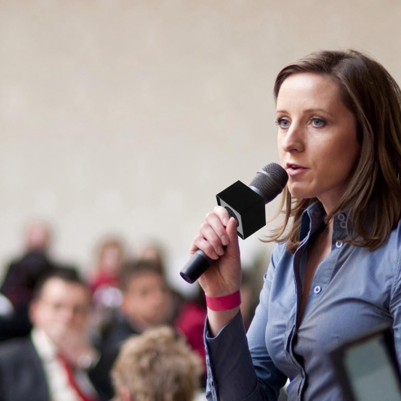 The microphone cube logo can be engraved with a PVC board or pasted with a multi-coloured printing sticker. Microphone holder for microphone stand. It is not easy to deform, and good for advertising while you are. Interview Microphone Logo The item is a portable and practical microphone station logo, which is mainly made of durable hard ABS plastic and is suitable for professional interview microphones