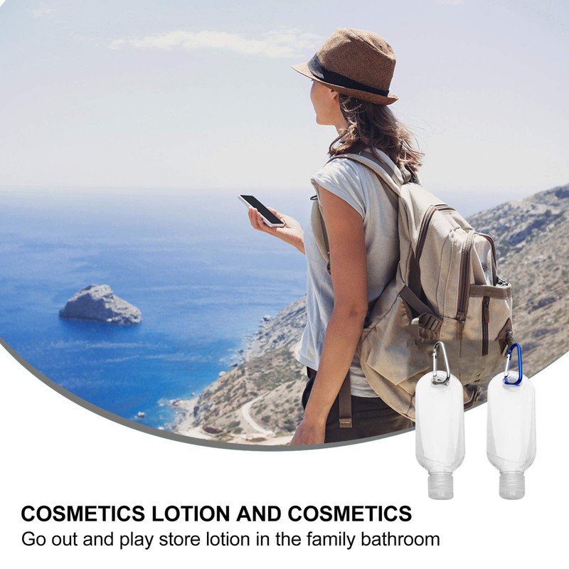 Healifty 16pcs Travel Plastic Clear Keychain Bottles 60ml Leakproof Empty Squeeze Container Flip Cap With Hook Carabiner for Cosmetics Toiletries Liquids