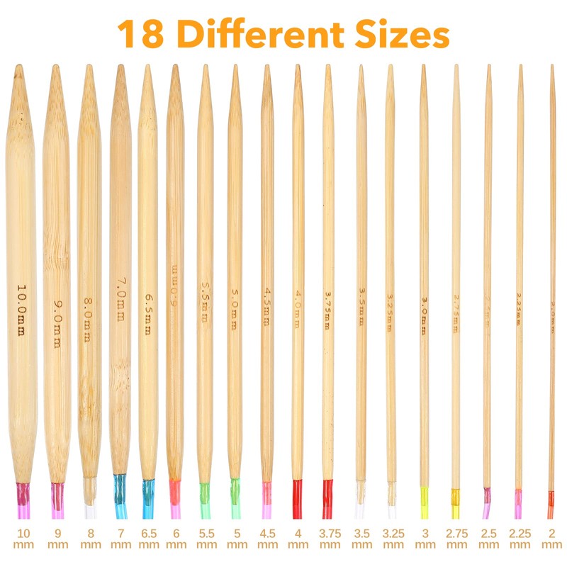 - 18 different circular knitting needle sizes: including 2.0 mm, 2.25 mm, 2.5 mm, 2.75 mm, 3.0 mm, 3.25 mm, 3.5 mm, 3.75 mm, 4.0 mm, 4.5 mm, 5.0 mm, 5.5 mm, 6.0 mm, 6.5 mm, 7.0 mm, 8.0 9.0 mm 0mm 10mm 0mm